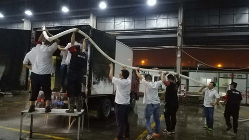 2017年8月11日凌晨0:20,水產(chǎn)蝦區(qū)南棚140號(hào)攤位上一輛牌號(hào)為蘇F966T7的箱式貨車突發(fā)自燃,黑色濃煙從緊閉的車廂里往外冒,火苗在車廂打開的一瞬間迅速串出,火勢(shì)兇猛,當(dāng)時(shí)自燃車輛周圍車流人流密集,情況十分緊急。