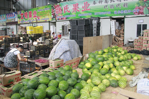 “西瓜交易量高了,交易額低了,是因?yàn)閮r(jià)格低。”通農(nóng)物流水果交易區(qū)經(jīng)理解雪峰說(shuō),“西瓜露地種植面積擴(kuò)大、主產(chǎn)區(qū)產(chǎn)量高、降雨等是西瓜價(jià)格低廉的原因。”