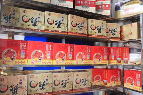 記者走訪通農(nóng)物流,大閘蟹已進(jìn)入熱賣期?!艾F(xiàn)在就是吃大閘蟹的旺季,品質(zhì)好的蟹肉結(jié)實(shí),蟹黃飽滿?!苯?jīng)營戶周老板介紹:“這兩天賣得最好的是大閘蟹禮盒,公母搭配6對裝,按重量零售200-400元不等,較市區(qū)農(nóng)貿(mào)市場便宜將近一半。近期買比較劃算,節(jié)日期間價(jià)格會上漲?!遍e聊間,記者發(fā)現(xiàn)這家批發(fā)店鋪里另有幾款特色進(jìn)口海鮮禮盒也隨節(jié)日而走紅,最貴的大約在500元左右,訂單不斷。
