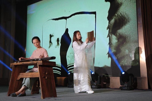 一掬細(xì)沙、一雙妙手,瞬間變化,靈動間,將書香南通景象在光影與沙完美融合中躍然呈現(xiàn)。一曲《良宵引》清越和雅、細(xì)膩委婉,與沙畫藝術(shù)情景交融,唯美動人。輕風(fēng)入弦,撫琴而歌,《詩經(jīng)•衛(wèi)風(fēng)•碩人》贊揚的女子面若桃花、雍容嫻靜、她有著博大的胸懷,高尚的志趣。節(jié)目《博雅女性 魅力南通》以高雅的意境,融沙畫表演、古琴演奏、詩經(jīng)誦讀為一體的新穎形式獲得與會代表的一致好評。