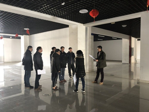1月15日,客服中心主任游珩帶領(lǐng)招商科、物業(yè)科和安保部的負責人員來到糧油大廳,協(xié)調(diào)部署有關(guān)2018年通農(nóng)物流年貨展銷會的籌備工作。