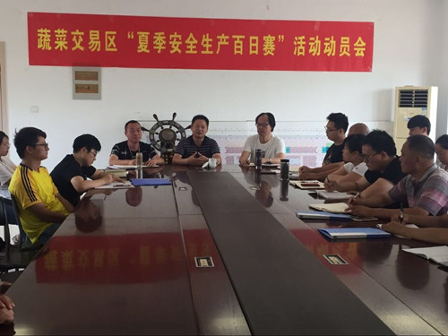 夏季來(lái)臨,高溫酷暑和臺(tái)風(fēng)雷電暴雨等惡劣天氣頻發(fā),為進(jìn)一步抓好蔬菜交易區(qū)安全生產(chǎn)管理,圓滿完成“夏百賽”活動(dòng),蔬菜區(qū)在7月13日下午召開了“夏季安全生產(chǎn)百日賽”員工動(dòng)員大會(huì)。