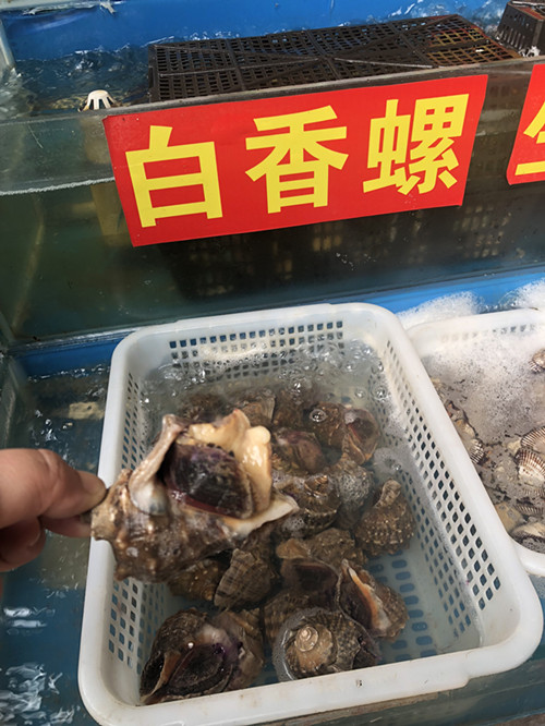 在購買螺螄的時(shí)候要選擇外殼呈青色,且有一定光潔度的螺螄。太大的螺螄肉質(zhì)粗糙,太小的又食之不甘。一般選個(gè)頭不大不小,殼的顏色是褐色里透著黃綠色的螺螄。與此同時(shí),除了帶殼的螺螄外經(jīng)營戶還準(zhǔn)備了大量的螺螄肉,節(jié)約了消費(fèi)者的時(shí)間?,F(xiàn)在的螺螄價(jià)格也是非常優(yōu)惠,每斤2.5—3元。白香螺在33—35元/斤,相思螺分大小,大的35元左右/斤,一只大約半斤重,小的相思螺30元/斤?;?/span>70元左右/斤,海螺28—30元/斤。(水產(chǎn)區(qū) 陳珊珊)