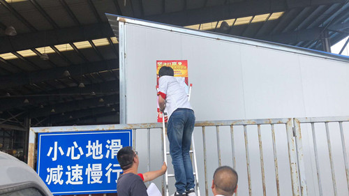 同時為了加大掃黑除惡專項斗爭的宣傳力度,14日上午在安全員李祥的帶領(lǐng)下,在水產(chǎn)交易區(qū)各個醒目位置新增張貼了掃黑除惡宣傳標(biāo)語、掃黑辦舉報電話。(水產(chǎn)區(qū) 陳旭鵬)