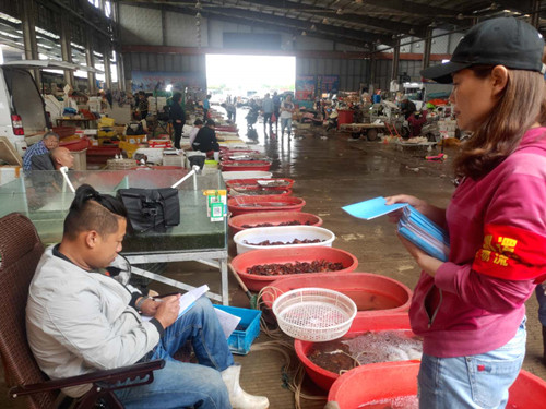 為有力打擊震懾黑惡勢力,形成長效機制,維護市場和諧穩(wěn)定,6月13日下午,水產(chǎn)區(qū)在經(jīng)理室的指揮下,向所有員工和經(jīng)營戶發(fā)放了《掃黑除惡專項斗爭應(yīng)知應(yīng)會讀本》,在對經(jīng)營戶的發(fā)放過程中鼓勵經(jīng)營戶檢舉、揭發(fā)黑惡勢力。