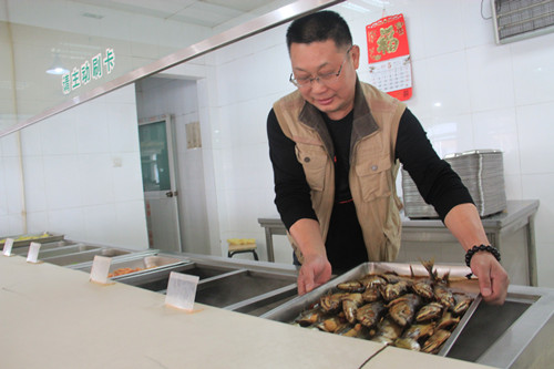 11點(diǎn),午飯開飯時(shí)間到了。此時(shí),一盆盆美味佳肴排列在桌上。等到單位員工全部用餐完畢,食堂的師傅們才開始就餐。稍事休息,他們又開始準(zhǔn)備晚餐了。