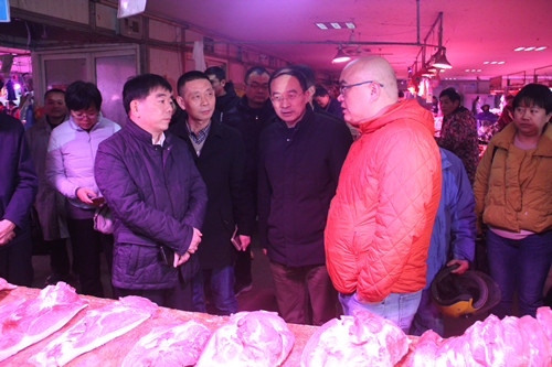 110日下午,南通市人民政府副市長趙聞斌冒雨來到通農(nóng)物流了解春節(jié)前夕保供穩(wěn)價情況,在三號服務(wù)樓聽取了通農(nóng)物流春節(jié)前夕農(nóng)產(chǎn)品供應(yīng)量及價格情況以及遇有惡劣天氣應(yīng)急預(yù)案。趙聞斌副市長尤其關(guān)心豬肉價格及供應(yīng)情況,通農(nóng)物流黨總支書記、總經(jīng)理徐徑同志向趙聞斌副市長做了詳細(xì)匯報:通農(nóng)物流現(xiàn)豬肉供應(yīng)貨源充足,公司鼓勵經(jīng)營戶從黑龍江、遼寧、河南、河北、安徽等地積極組織貨源,迎接節(jié)前銷售高峰,目前日銷售量在1000頭左右,豬肉批發(fā)價格穩(wěn)定在23/斤左右。除此以外,通農(nóng)物流冷庫積極發(fā)揮蓄水池作用,儲存中糧集團(tuán)1.5萬噸儲備肉,以滿足極端天氣下民眾需求。