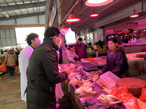 節(jié)前在邵總的帶領(lǐng)下,食安部主要針對(duì)各交易區(qū)是否售賣(mài)活禽及野生動(dòng)物進(jìn)行了徹底排查,另外走訪各區(qū)了解是否有疫區(qū)返通的經(jīng)營(yíng)戶,同時(shí)要求經(jīng)營(yíng)戶返鄉(xiāng)過(guò)年期間要做好自我防護(hù)措施。