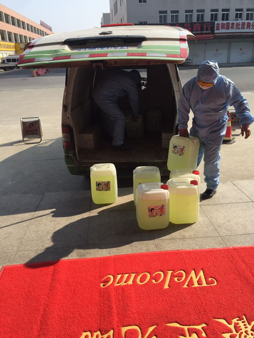 為做好疫情防控,顧及全員上下安全,2月1日承包人統(tǒng)一為大家購買防疫服。2月4日配送中心積極向公司贈送10桶84消毒液,為奮戰(zhàn)在一線的工作人員提供了有利的物資保障。