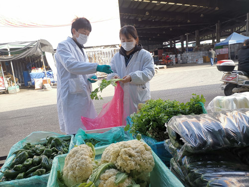 自疫情以來,通農(nóng)物流進一步加大食品安全快速檢測頻率,聯(lián)合第三方食品安全檢測機構(gòu)重點對糧食加工品、食用油、蔬菜、畜禽肉、水產(chǎn)品等人民群眾日常消費量大的食品品種的抽檢,重點檢測農(nóng)獸殘、污染物、微生物、真菌毒素、重金屬等項目。疫情期間共檢測農(nóng)產(chǎn)品29058批次,合格率為99.73%。近期根據(jù)南通市市場管理局的要求,檢測中心將韭菜作為重點品種進行農(nóng)藥殘留和腐霉利殺菌劑專項檢測,同時與法檢機構(gòu)做好有效銜接,加大了對不合格批次的法檢力度。做好檢測不合格產(chǎn)品處置記錄與產(chǎn)品溯源工作,對不合格產(chǎn)品,嚴格按照不合格品的處理流程,規(guī)范處理,及時控制和消除風(fēng)險隱患。