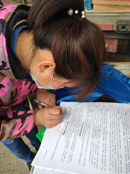 在向經營戶宣傳時,發(fā)放《通農物流經營戶2020年度食品安全整治行動承諾書》,重點介紹“九個要”,告知經營戶今年食品安全整治行動的三個階段及三階段不同的目標要求,待確定無任何疑義之后,經營戶再簽字確認。