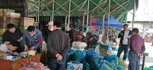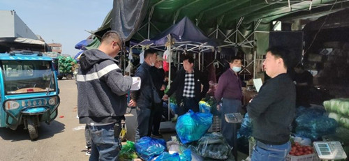 蔬菜交易區(qū)一刻也不敢懈怠,迎難攻堅(jiān),全面筑牢蔬菜安全防線。(蔬菜區(qū) 卜海霞)