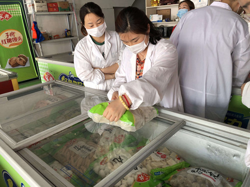 我檢測中心員工針對發(fā)現(xiàn)的問題,當(dāng)場提出了具體整改意見。要求商戶將不規(guī)范的預(yù)包裝食品立即下架,溯源并通知其整改,進(jìn)一步督促各經(jīng)營戶加強(qiáng)食品安全意識,更加完善其經(jīng)營環(huán)境衛(wèi)生狀況。同時,疫情期間,由于批發(fā)市場的特殊性,更是要督促各經(jīng)營戶在營業(yè)期間全程佩戴好的口罩手套,加強(qiáng)自身防范。