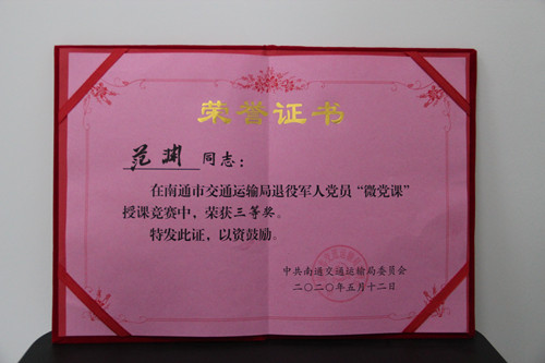 近日,通農(nóng)物流積極報(bào)送80后退役軍人范淵參加由市交通運(yùn)輸局舉辦交通系統(tǒng)退役軍人黨員“微黨課”授課競(jìng)賽,范淵同志在比賽選拔中脫穎而出,講授的《不忘初心、牢記使命,國(guó)家興亡、我的責(zé)任》,與來(lái)自交通各企事業(yè)單位的12名選手同臺(tái)競(jìng)技,最終,榮獲“微黨課”授課競(jìng)賽三等獎(jiǎng)的好成績(jī),為通農(nóng)退役軍人增光添彩,樹(shù)立了良好的榜樣。(綜合部 居媛媛)