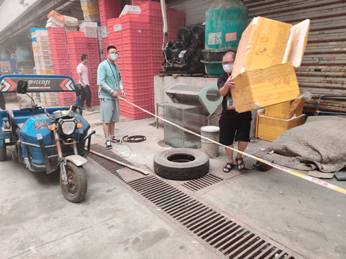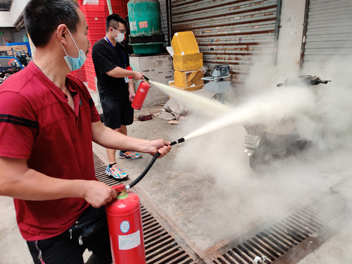 ③在支援人員未到情況下,呼叫周邊經(jīng)營戶和當(dāng)班員工先用干粉滅火器進(jìn)行撲救,控制火情并清移周邊電瓶車和易燃物,周邊拉起警戒線。