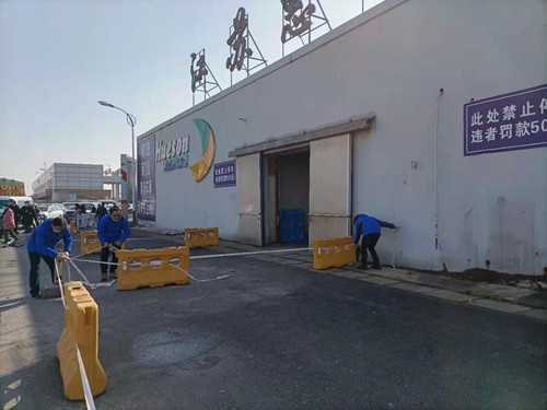此次清掃活動以惠生區(qū)域的車輛環(huán)境衛(wèi)生秩序為主,工作人員手持掃帚、簸箕、警戒線等開展環(huán)境衛(wèi)生工作。一是清理惠生冷庫區(qū)域堆積的雜物和廢舊垃圾;二是集中清理惠生門口區(qū)域的瓶罐及紙屑垃圾;三是集中更換所有黃色水柱警戒線。在清掃過程中,因車流量較多,個別外來車輛存在亂停放的現(xiàn)象,部分警戒線也被車輛損壞。通過與個別車主溝通亂停車輛的現(xiàn)象后,工作人員一一將所有警戒線進行了更換,黃色水柱的位置也適當(dāng)?shù)倪M行了調(diào)整,同時將地面所有的垃圾進行了清掃。