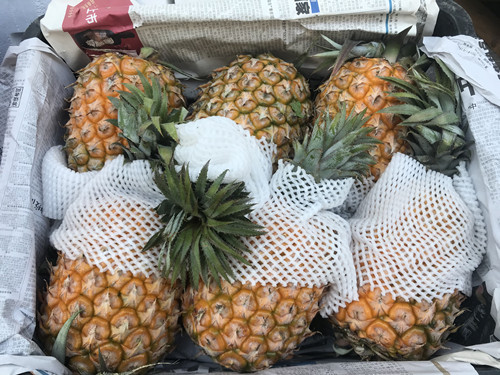 現(xiàn)在也到了菠蘿上市的季節(jié)。在水果交易區(qū)里,前來采購菠蘿的進貨商絡繹不絕,其價格在2-3元/斤。據(jù)了解,目前市場上銷售的菠蘿主要來自海南,菠蘿肉色金黃、香味濃郁、酸甜可口、清脆多汁,享有著名的熱帶水果之稱的美譽。
