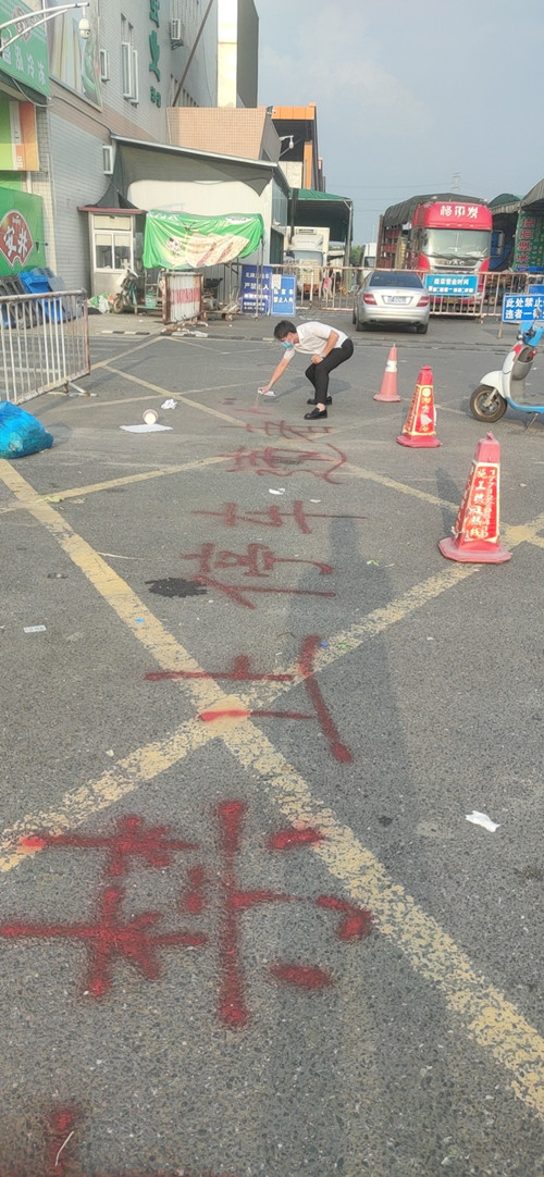 此次整治涉及各出入口,大棚、大廳中通道,以及重點(diǎn)交通要道。在此次整治過程中,蔬菜交易區(qū)西門是此次整治的一個(gè)重點(diǎn)區(qū)域。個(gè)別買家為了自己一時(shí)的方便,將買貨車輛集中隨意停放在蔬菜交易區(qū)西門通道上,給其他前來購買商品的買家?guī)Я送ㄐ姓系K,出現(xiàn)了西門擁堵現(xiàn)象。通過工作人員現(xiàn)場(chǎng)查看發(fā)現(xiàn),造成這種擁堵現(xiàn)象的主要原因?yàn)槭卟藚^(qū)西門通道內(nèi)沒有固定的標(biāo)線、標(biāo)志。為此,工作人員立即采取措施。首先,劃出通道標(biāo)線,明確通道內(nèi)禁停區(qū)域,并在通道內(nèi)禁停區(qū)域噴涂“禁止停車”等紅色醒目字體用于提醒買家此區(qū)域不可以停放車輛。隨后,工作人員在通道邊緣拉起警戒帶,用于隔離停放區(qū)和通道。最后,工作人員叮囑現(xiàn)場(chǎng)管理人員加強(qiáng)通道管理,合理安排車輛停放。