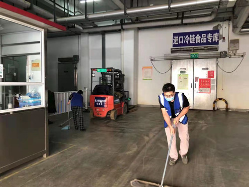 員工們還積極行動起來,開始打掃冷庫各個區(qū)域,大家不怕臟,不怕累,把一些衛(wèi)生死角做了一次徹底的清潔。男同事們把庫區(qū)的角落衛(wèi)生也做起來,拔除雜草,傾倒垃圾,清洗垃圾桶,在大家的努力下,整個庫區(qū)衛(wèi)生也煥然一清。