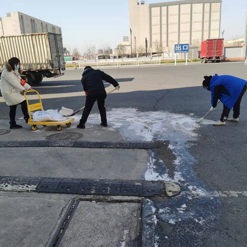 12月27日,配套區(qū)域網(wǎng)格化管理人員陶虹巡查時發(fā)現(xiàn),西南門出口處道路有結(jié)冰現(xiàn)象,為確保場內(nèi)車輛及行人的出行安全,我交易區(qū)安全主辦陳曉偉立即組織人員對該路面進行快速清理。