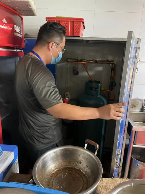 為深入貫徹《關(guān)于深入開展城鎮(zhèn)燃氣安全風(fēng)險隱患再排查再整治工作的通知》的通知精神,干貨區(qū)立即展開行動,7月12日下午,有安全管理員朱燚帶隊,片區(qū)責(zé)任人一起參與對商業(yè)樓餐飲飯店的商戶進行專項檢查。