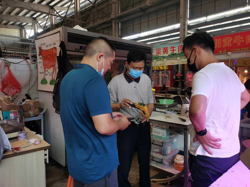 檢查過(guò)程中,邵總使用專業(yè)的測(cè)溫儀器測(cè)量了用電開關(guān)溫度、插座溫度、冷庫(kù)溫度、冰柜溫度,確保各項(xiàng)溫度在正常范圍內(nèi),并且著重對(duì)照公司用電設(shè)備登記卡統(tǒng)計(jì)情況,統(tǒng)一取締攤位、店面大功率電器。