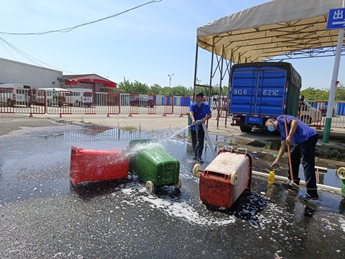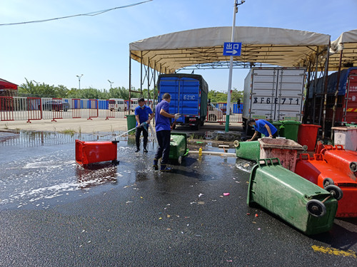 首先是對交易區(qū)內(nèi)亂堆亂放的衛(wèi)生死角進(jìn)行徹底清理,并要求經(jīng)營戶做到“門前三包”。然后在水果區(qū)領(lǐng)導(dǎo)小組人員的配合下,對所有垃圾桶進(jìn)行沖洗和擦拭,沖洗后的垃圾桶煥然一新,整齊擺放在垃圾站。并對垃圾站路面上的油污也仔細(xì)沖刷,將地面上的污漬清理干凈。最后對大棚大廳外圍外墻張貼的一些小廣告,進(jìn)行了一次全面清理。