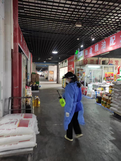 10月19日-10月21日,為有序推進(jìn)復(fù)工復(fù)市,干貨配送區(qū)對(duì)5、6、7號(hào)大廳、商業(yè)樓及糧油大廳等區(qū)域開展全面消殺工作。片區(qū)網(wǎng)格員在做好自身防護(hù)的前提下,對(duì)所有電梯、通道及進(jìn)出口等角落也全面進(jìn)行消殺,確保應(yīng)消盡消,不留死角。