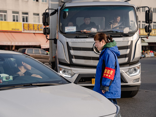 自2022年9月通農(nóng)物流啟動(dòng)停車(chē)收費(fèi)系統(tǒng)以來(lái),市場(chǎng)日車(chē)輛進(jìn)場(chǎng)數(shù)平均達(dá)8000輛?!熬S護(hù)市場(chǎng)停車(chē)秩序、督導(dǎo)司機(jī)規(guī)范行車(chē)、規(guī)范掃碼繳費(fèi)”就是吳靜的日常工作內(nèi)容。