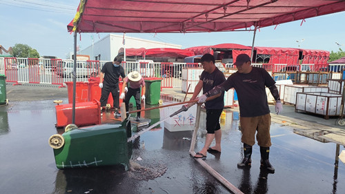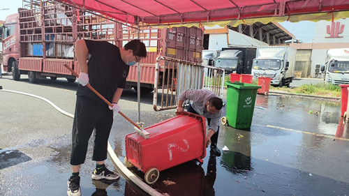 進入夏季,垃圾桶里的垃圾極易發(fā)生腐敗變質(zhì),加之各類瓜果大量上市,蚊蠅進入繁殖期,藏污納垢的垃圾桶嚴重影響交易區(qū)內(nèi)的環(huán)境衛(wèi)生。為提升市場環(huán)境質(zhì)量,解決場內(nèi)垃圾桶表面臟污、氣味難聞等問題。近日水果區(qū)班組成員及安全管理人員對交易區(qū)內(nèi)的垃圾桶進行了清洗。