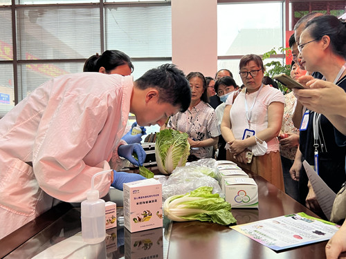 活動(dòng)現(xiàn)場(chǎng)設(shè)置了“你點(diǎn)我檢”快檢點(diǎn),現(xiàn)場(chǎng)快檢農(nóng)產(chǎn)品,不少經(jīng)營(yíng)戶(hù)和消費(fèi)者拿著自己的大白菜、芹菜、茄子等前來(lái)檢測(cè),讓消費(fèi)者和經(jīng)營(yíng)戶(hù)近距離觀看檢測(cè)過(guò)程,成為食品安全的參與者、見(jiàn)證者和監(jiān)督者。部分經(jīng)營(yíng)戶(hù)和消費(fèi)者對(duì)農(nóng)藥殘留快篩檢測(cè)試劑盒很感興趣,他們表示想在購(gòu)買(mǎi)或進(jìn)貨前先用試劑盒檢測(cè),避免買(mǎi)到農(nóng)藥殘留超標(biāo)的菜品?!澳泓c(diǎn)我檢”活動(dòng)拉近了經(jīng)營(yíng)戶(hù)、消費(fèi)者與農(nóng)產(chǎn)品檢驗(yàn)檢測(cè)的距離,進(jìn)一步提高了食品安全防范意識(shí),增強(qiáng)了廣大群眾食品安全自我保護(hù)能力。