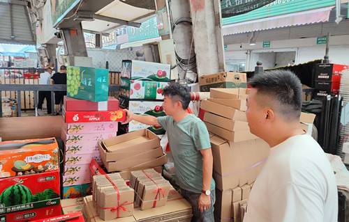 8月2日,水果區(qū)副經(jīng)理張曉建帶隊對水果交易區(qū)內(nèi)的八個大棚和兩個大廳開展消防安全專項檢查。