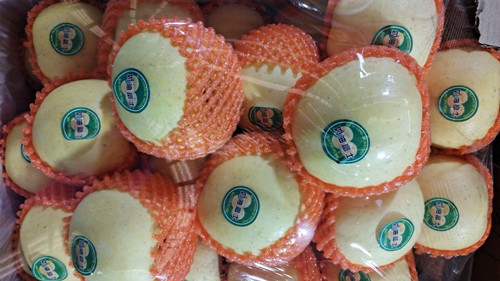 粉面的金帥蘋果,蘋果味很濃,老少皆宜,價(jià)格在3.5-4.5元/斤。奶油蘋果,超薄的果皮內(nèi)裹著嫩黃的果肉,奶香四溢,價(jià)格在4-5.5元/斤。陜西洛川蘋果,自然成熟,脆甜多汁,價(jià)格在3.5-6.5元/斤。煙臺(tái)紅富士蘋果以其碩大、色澤鮮艷、口感脆甜而聞名,甜度高,口感極佳,無(wú)論是新鮮食用還是加工成果汁、果醬食用,都能滿足不同人群的口味需求,價(jià)格在3-7元/斤。瑞雪蘋果,國(guó)產(chǎn)蘋果的“杠把子”,好口感,高顏值,價(jià)格在5-9元/斤。蛇果,原產(chǎn)地美國(guó)加州,果皮較厚堅(jiān)硬,表面有縱向的條紋和斑點(diǎn),果肉相對(duì)比較細(xì)膩,口感稍微有些干澀,價(jià)格7元/斤。(水果區(qū) 曹丹丹)