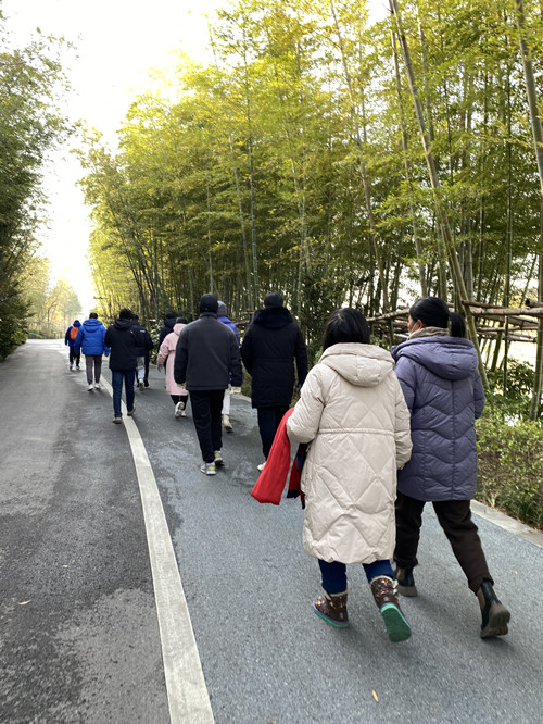 此次徒步路線全程5公里,從通農(nóng)物流展銷樓樓下出發(fā),穿過美麗的紫瑯濕地,一路走至南通大劇院,再返回通農(nóng)物流展銷樓。十二月是一個(gè)充滿浪漫與詩意的月份,冬意漸濃,清晨的風(fēng)略顯刺骨,但大家熱情不減,邁著矯健的步伐,個(gè)個(gè)精神飽滿。在黨旗的引領(lǐng)下,沿著美麗的紫瑯湖,呼吸著天然氧吧的新鮮空氣,享受著健步走帶來的激情活力,一路歡聲笑語,其樂融融。時(shí)而緩步慢走,彼此鼓勁加油;時(shí)而闊步向前,體驗(yàn)運(yùn)動(dòng)快樂;時(shí)而結(jié)伴暢談,交流工作體會(huì),呈現(xiàn)出不畏困難、勇毅前行、團(tuán)結(jié)互助、互相激勵(lì)、昂揚(yáng)向上的良好精神面貌,為紫瑯濕地增添了一道亮麗的風(fēng)景線。