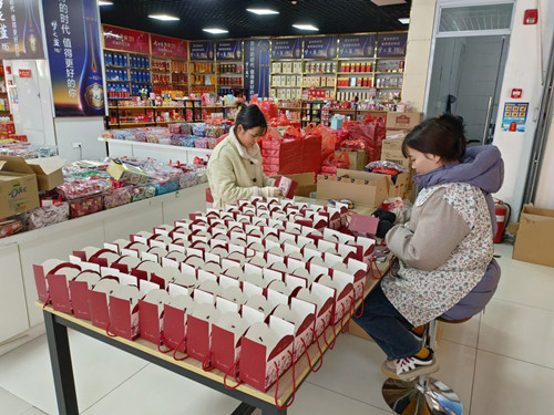 在通農(nóng)物流糧油大廳盛世喜糖店鋪內(nèi),目光所及之處能看到貨架上擺滿了不同檔次的喜糖禮盒和各種各樣的糖果,店內(nèi)禮盒的樣式有上百種,員工們備貨、包裝忙個(gè)不停。店鋪老板說道,近一個(gè)月以來,訂購喜糖禮盒、伴手禮的顧客逐漸增多。元旦即將來臨,訂單更是陸續(xù)不斷,每天幾千份糖總歸要包的,工作量是以前的雙倍,銷量迎來一個(gè)高峰,但價(jià)格上不會(huì)有太大變動(dòng)。店內(nèi)價(jià)格比外面便宜且種類也特別多,我們會(huì)根據(jù)顧客的要求,突出個(gè)性化,提升顧客的滿足感。