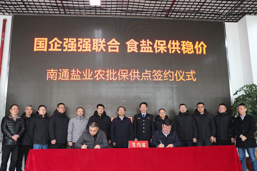 3月6日上午,南通鹽業(yè)通農(nóng)物流保供點簽約儀式在通農(nóng)物流展銷樓一樓舉行,江蘇省鹽業(yè)集團南通有限公司與南通通農(nóng)農(nóng)副產(chǎn)品配送有限公司正式簽署食鹽配送協(xié)議。崇川區(qū)委常委、崇川經(jīng)濟開發(fā)區(qū)黨工委書記閆靜翔、崇川區(qū)市場監(jiān)督管理局崇川經(jīng)濟開發(fā)區(qū)分局黨支部書記、局長周兵,江蘇省鹽業(yè)集團南通鹽業(yè)有限公司黨委書記、董事長、總經(jīng)理許文軍,南通汽運實業(yè)集團有限公司黨委委員、南通農(nóng)副產(chǎn)品物流有限公司總經(jīng)理孟宏等相關(guān)領(lǐng)導(dǎo)共同出席簽約儀式,并參觀了南通鹽業(yè)通農(nóng)物流保供點現(xiàn)場。