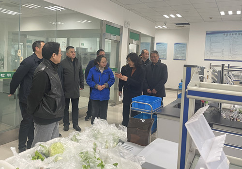 調(diào)研組一行首先來(lái)到通農(nóng)物流檢驗(yàn)檢測(cè)中心,通過(guò)查看農(nóng)產(chǎn)品檢驗(yàn)檢測(cè)過(guò)程、食品安全快速檢測(cè)管理系統(tǒng)等,詳細(xì)了解農(nóng)產(chǎn)品質(zhì)量安全情況。聽(tīng)取匯報(bào)后,調(diào)研組前往蔬菜交易區(qū)查看了農(nóng)產(chǎn)品進(jìn)貨查驗(yàn)登記等臺(tái)賬,并與場(chǎng)內(nèi)經(jīng)營(yíng)戶進(jìn)行了深入交流。