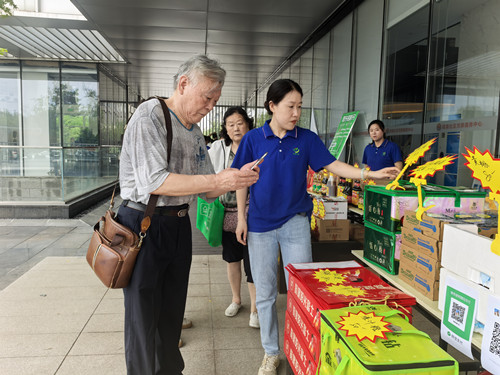 果蔬快閃便民集市上,通農(nóng)物流線上平臺(tái)通農(nóng)優(yōu)選為活動(dòng)提供了新鮮蔬菜、時(shí)令水果、米面糧油、奶制品等80多類(lèi)優(yōu)質(zhì)商品。經(jīng)通農(nóng)優(yōu)選嚴(yán)格選品的各類(lèi)商品質(zhì)優(yōu)價(jià)廉,吸引了不少鄰里居民前來(lái)選購(gòu)。居民李阿姨對(duì)集市活動(dòng)贊不絕口:“這個(gè)活動(dòng)真實(shí)惠,希望你們多辦幾次?!笨扉W集市還設(shè)有非遺文化體驗(yàn)區(qū)和營(yíng)養(yǎng)膳食科普區(qū)。