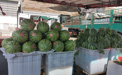目前水果區(qū)在售西瓜品種包括美都、硒砂瓜和東北瓜。